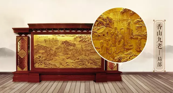 香山九老分别为白居易、胡杲、吉旼、郑据、刘真、卢慎、张浑、狄兼谟、卢贞9人。九位文人雅士隐居与山林,远离世俗烦扰,忘情于山水,耽于清淡。