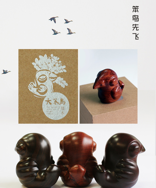 以木雕之圣手,演绎乾功坤艺之技法,黄小明大师用知行合一的态度真正的将东阳木雕“接地气”到了普通小额消费者,而“笨鸟系列”则是开路先锋,一路向新锐出发!