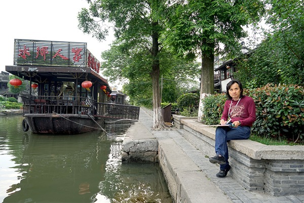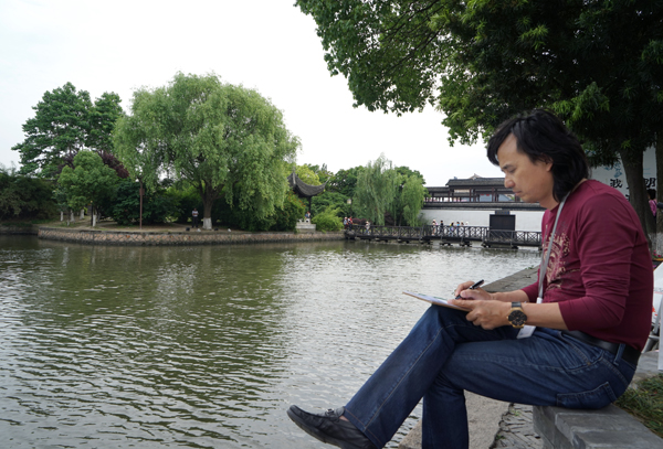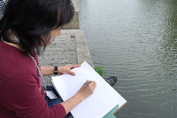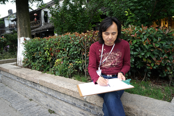 黄小明大师凝视远处,一艘小船映入视野,西塘的景色从未像现在这般温柔的进入到自己的内心,知天命的年纪让黄小明大师更能从细微之处观察到生活的美好。一手托着画板,一手拿笔的他,快速的在画板上勾勒出船的影子,思路由此豁然开朗,用自己最拿手的木雕艺术展现西塘无与伦比的美,已经在黄小明大师脑海成型,定格,随摇曳的小船渐行远方!