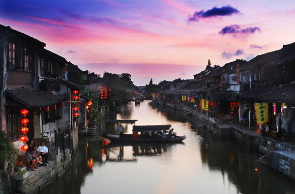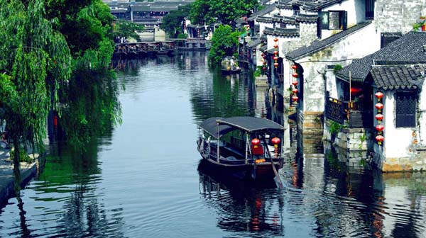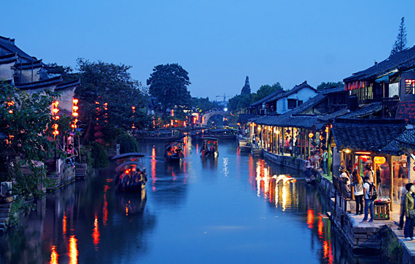 “春秋的水、唐宋的镇、明清的建筑、现代的人”将一幅时空穿越的卷轴一览无余的展现在我们面前:小桥流水,碧波荡漾;粉墙高耸,瓦屋倒影;夕阳斜照,灯火闪烁……你站在高处看风景,自己亦是风景中不可替代的景致。