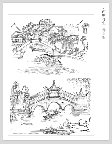 袅袅炊烟,万家灯火阑珊处;竹韵传情,千丝万缕一份情。丝竹管弦之乐仿佛就在耳畔,黄小明大师不由得拿起笔,信手涂鸦中将竹子的韵味与人间的烟火合二为一,静谧之中让人感到西塘的人间如画,如痴如醉中追问“今夕是何年”?