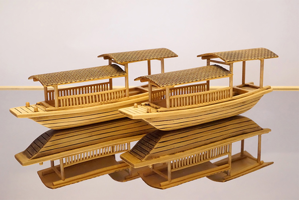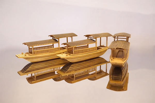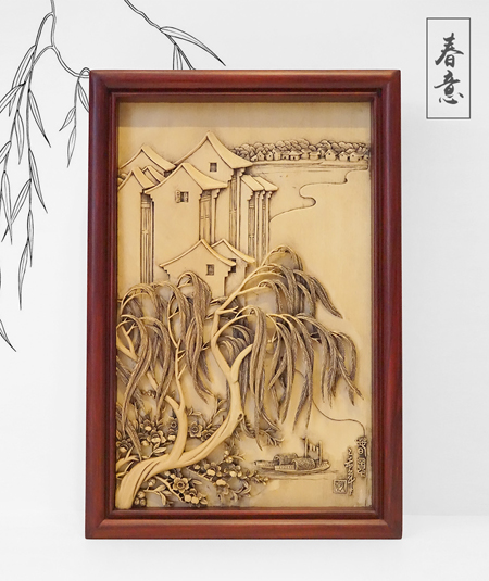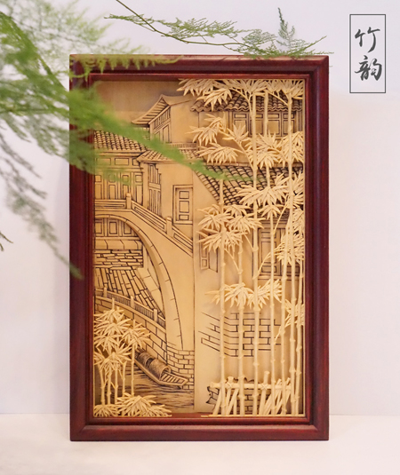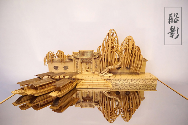 中国工艺美术大师黄小明游历西塘期间,精心创作了木雕印象西塘系列——船影、春意、竹韵,将江南水乡的轻柔与温婉,以写实与写意结合,将小桥流水的欢畅,湿雨的山水画与人文情愫相结合,尽展千年古镇西塘之风韵: