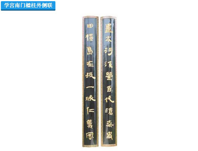 上联:即墨古城三面濒海,右伏马鞍(山),北至灵山,南依崂峰,东临天柱(山),史称“形胜为东方冠”。淮涉河(墨水河前称)绕城穿市回环曲折进入城厢地区,映山衬廊,风光无限,素有“淮涉八景”之美。