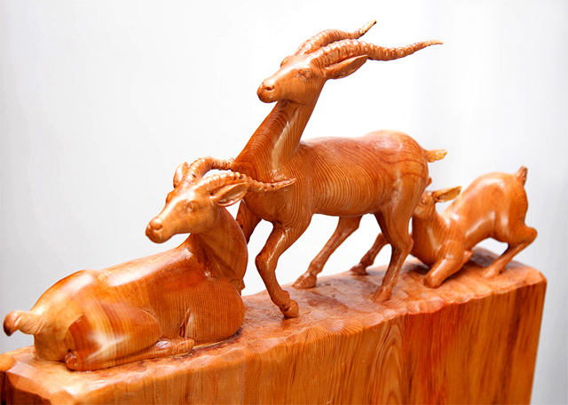 此次,由黄小明大师创作的木雕作品《晨》、《羚羊》、《收获》,都是黄小明大师通过实地的写生、速写,将东阳木雕和中西方美学文化完美结合的作品。黄小明大师此种创作形式也奠定了东阳木雕的“超写实主义”技法。