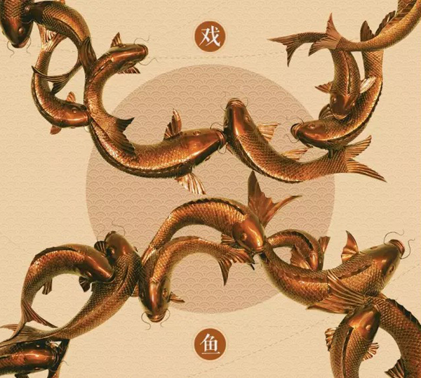 中国工艺美术大师黄小明,深谙中国传统哲学,从鱼中领悟出深邃的自由之道。创作了这尊《鱼戏图》,19条跃动的鲤鱼,组合相接,形成一个完整环形。首尾相接,万物轮回,鱼鱼相扣,严丝合缝。