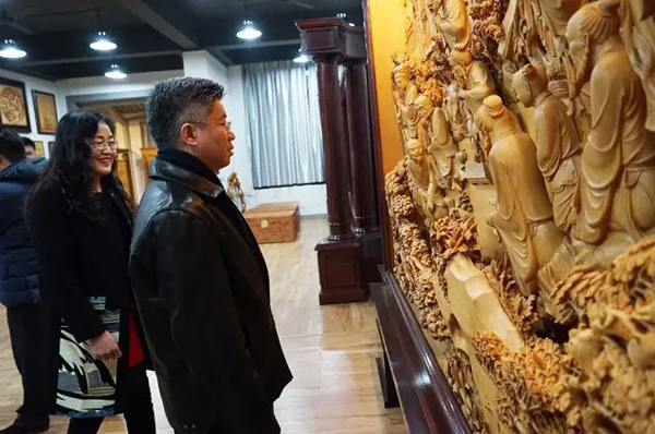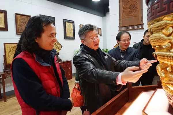 参观过程中,黄小明大师耐心地向客人解答各种关于东阳木雕艺术方面的问题,使大家对东阳木雕这一非物质文化遗产的了解上升到了一个新的层面。