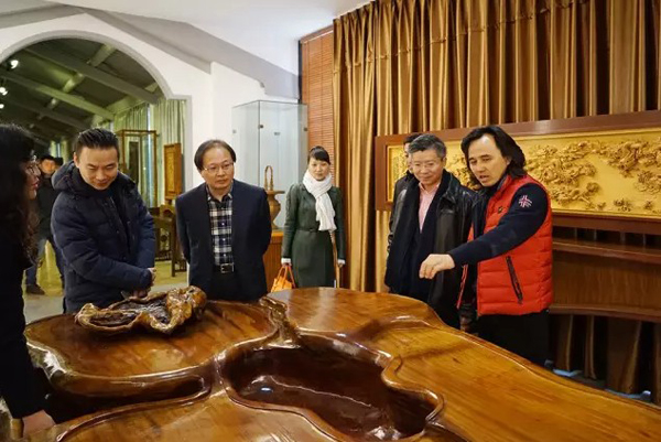 19日上午,上海复旦大学管理学院院长陆雄文、常务副院长周健一行来到了浙江东阳,在黄小明大师的陪同下参观了黄小明木雕艺术馆及个木园。