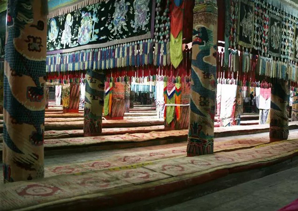佛教寺院我见过的并不在少数,但此次游览塔尔寺,最为惊喜的发现在于,一个宗教圣地之中,竟流传着多种传统工艺美术技艺,它们就是被誉为“塔尔寺艺术三绝”的酥油花、壁画和堆绣。
