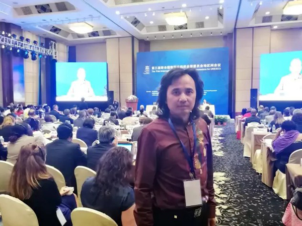 随后,黄小明大师参加了第三届联合国教科文组织全国委员会地区间会议,此次会议主要讨论在当前社会环境之下,世界范围内的非物质文化遗产因如何保护及创新发展的问题。
