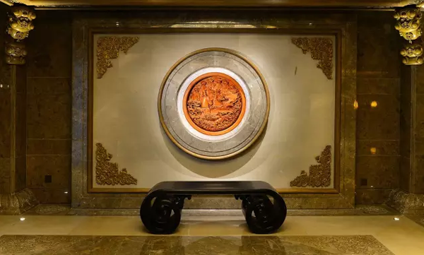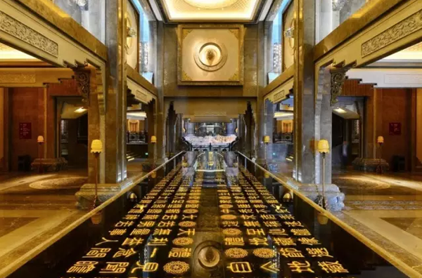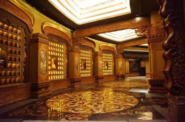 正是这份探索精神,使得黄小明大师在从事佛教装饰艺术时,划时代的将现代文化和审美元素融入其中。在设计南京牛首山佛顶宫木雕装饰时,黄小明大师以木雕月梁为线条,纵横划描之间便将千佛廊分隔成12个空间,不仅给人以佛法的空灵感,更凸显了空间艺术的张力。
