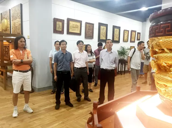 在黄小明大师的陪同下,祖钰博副主任仔细地欣赏了艺术馆中的众多木雕作品,在每一件作品前都驻足许久,意犹未尽。