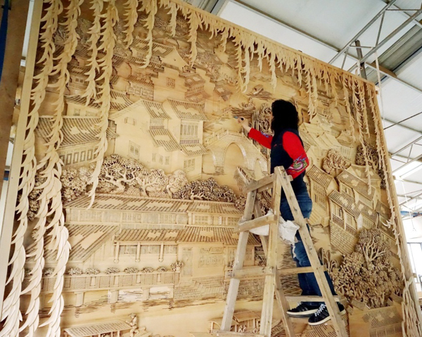 主会场中的这件东阳木雕作品《忆江南》,给国际友人讲述了一个隐藏于画面中的,发生在以杭州为代表的江南的“小镇故事”,让外宾感受中国木雕艺术的博大精深之外,充分领略中国江南水乡的独特韵味。