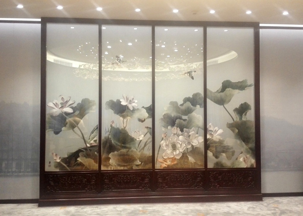 作品名称:丝绸作品展示外框、各类家具屏风陈设
