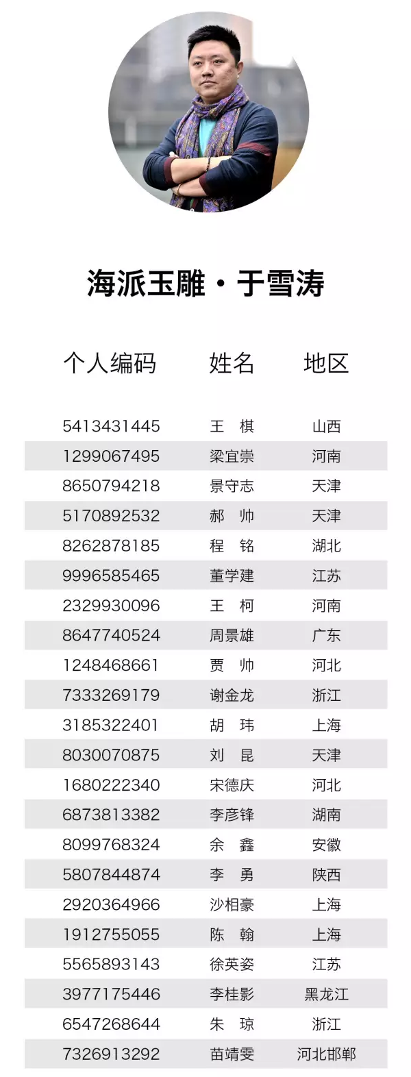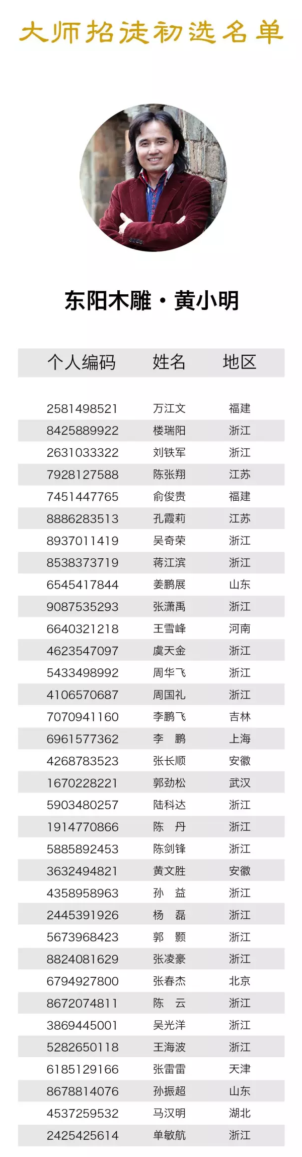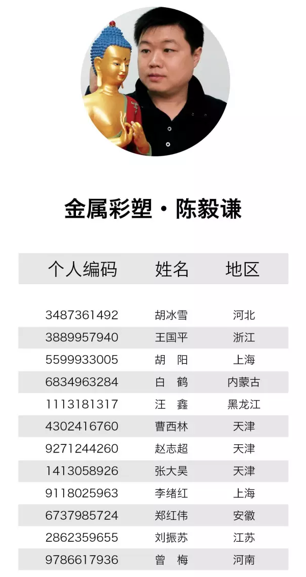 而后,经过工艺中国对报名者信息的层层核实和认真选拔,并在征询四位中国工艺美术大师的意见后,最终确定了87位学员进入下一阶段的“大师招徒见面会”活动,现将初选名单公布如下: