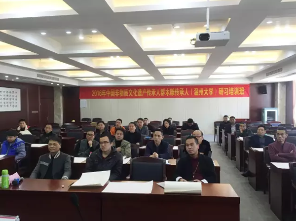 12月22—23日,2016年中国非物质文化遗产传承人群木雕传承人(温州大学)研习培训班正式开课,中国工艺美术大师、东阳木雕代表性传承人黄小明作为特邀导师,为学员带来了一场生动的木雕艺术之旅。