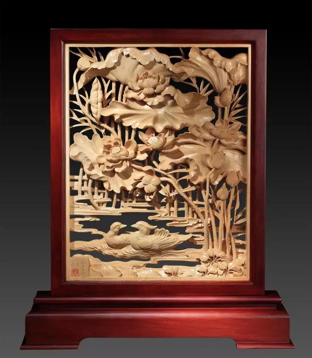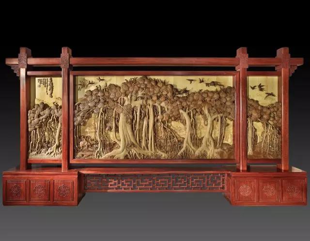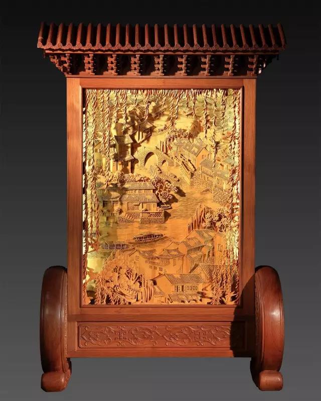 杭州G20峰会期间,黄小明大师为主会场创作的大型木雕屏风《忆江南》、《百鸟朝凤》两件作品,在此次展览上也将亮相,不过这次展出的是两件作品的缩小版——G20峰会木雕屏风同款。同样的鬼斧神工,在木雕台屏之上表现得更为精细。