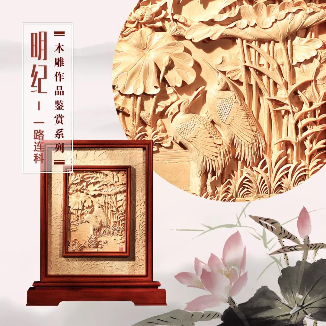 黄小明大师独创的取景框木雕拥有外观专利,其灵感来自于摄影构图与对焦原理,模拟摄影过程中,以取景框取景并对焦而形成的周围模糊焦点清晰的场景,作品以满地薄浮雕为底,主体以深浮雕甚至高浮雕将表现画面置于一个取景框之中,符合人们观赏作品时的视觉习惯,又突出了画面主体,丰富了木雕作品的艺术风格。取景框木雕作品包括:《一路连科》、《年年有余》、《松风远岚》等。