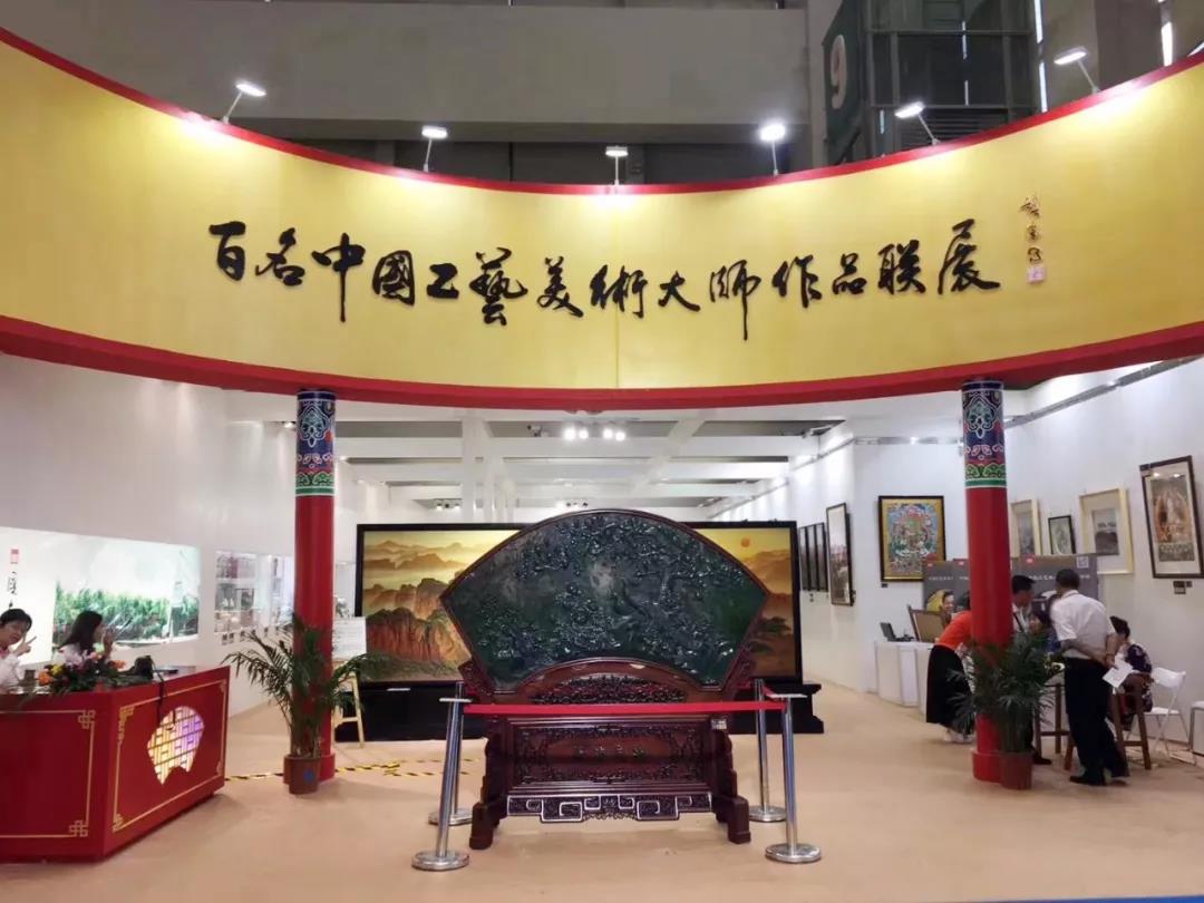 在“百名中国工艺美术大师作品联展”区,黄小明大师东阳木雕作品《双龙戏珠》惊艳亮相,吸引了众多观众驻足欣赏。