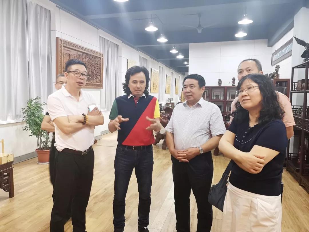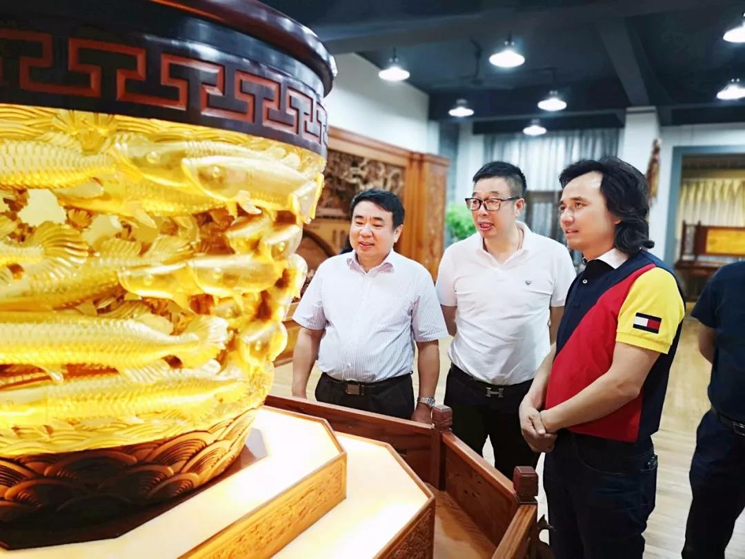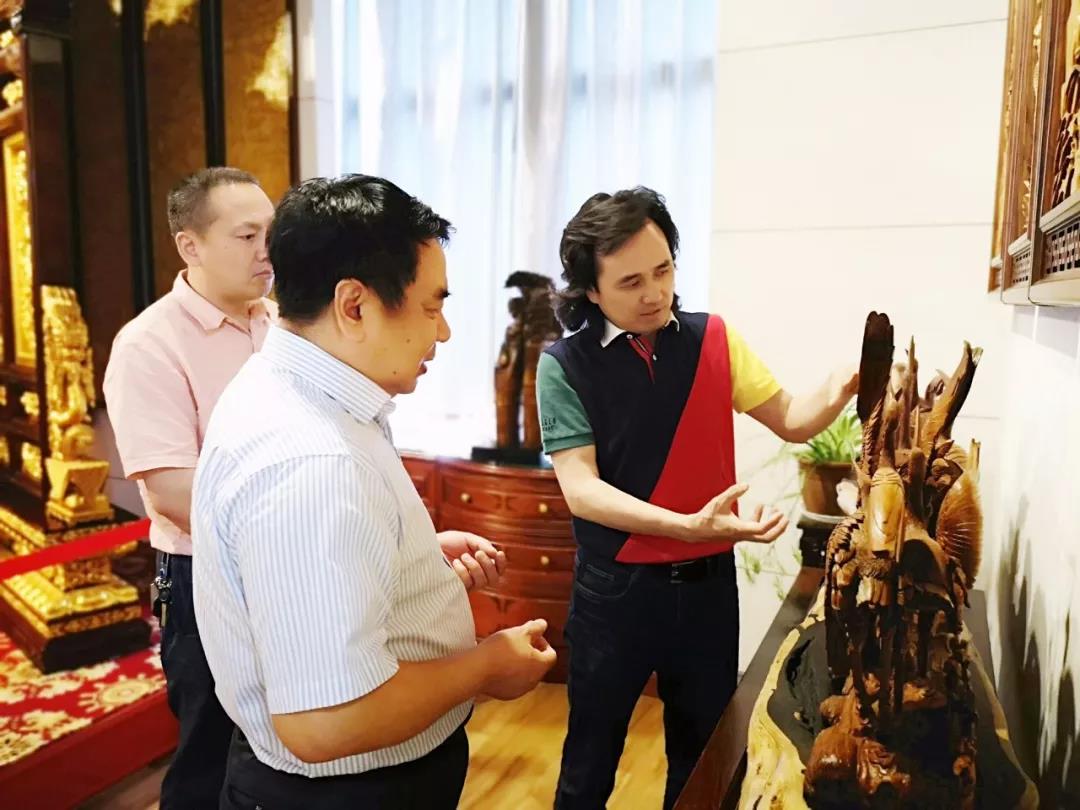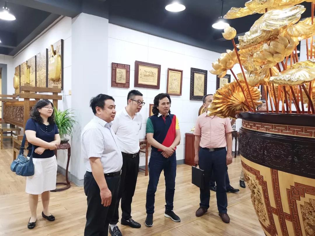 在黄小明大师的带领下,张兆都主席一行参观了黄小明木雕艺术馆,诸位领导认真欣赏了陈列于艺术馆中的每件木雕作品。