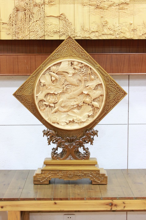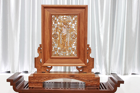 占据10个摊位的浙江工艺美术大师黄小明工作室展馆也吸引了众多参观者的眼球,大家对木雕落地屏风“天籁胜境”、木雕壁挂“云南风情”等工艺美术精品大加赞赏。