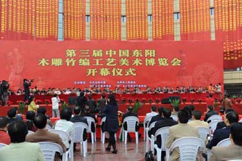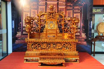 2008年11月18~22日第三届中国(东阳)木雕竹编工艺美术博览会在东阳世贸城展馆参展,由我公司工艺美术大师黄小明设计制作的《乾隆宝座》荣获此届金奖。
